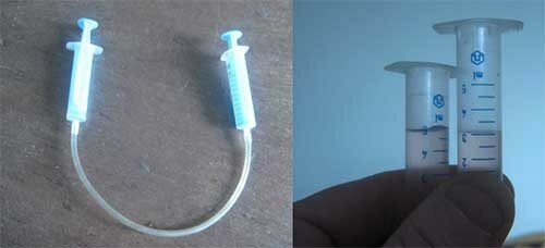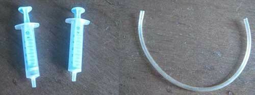 И, напоследок, предлагаю Вашему вниманию простой самодельный гидроуровень. Рекомендации по изготовлению простые, шприцы берите побольше, а трубки потолще,будет работать лучше.